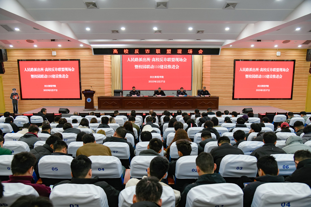2月27 日上午,人民路派出所高校反诈联盟现场会暨校园联动110建设推进会在我校召开。校党委常委、宣传部部长梁仕新,市公安局内保支队副支队长郑靖,人民路派出所所长窦新、副所长李心鹏及社区民警,湖北医药学院、湖北工业职业技术学院和我校保卫处、学工处负责人、学生代表和保安公司负责人等近300人参会。